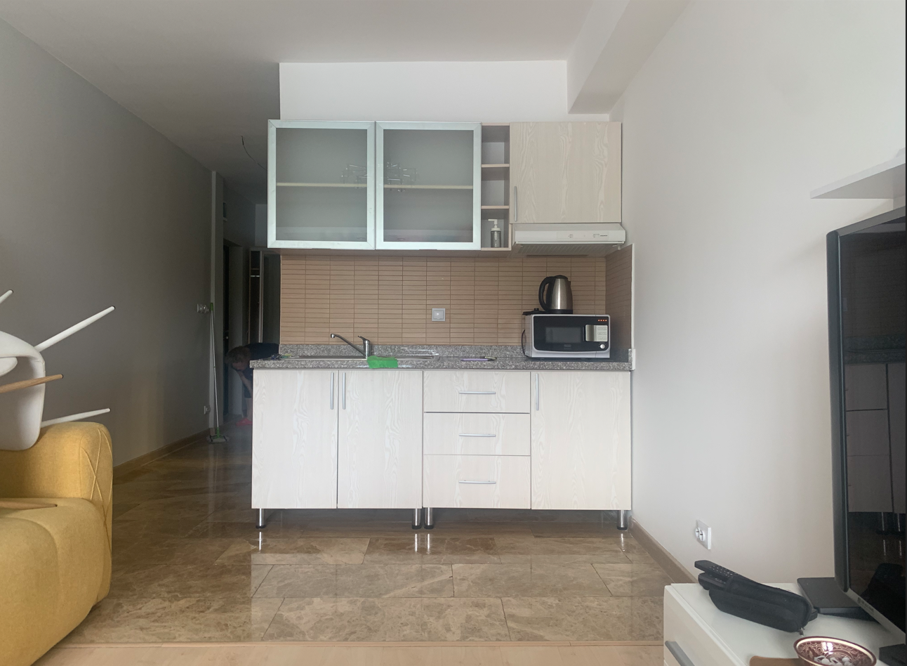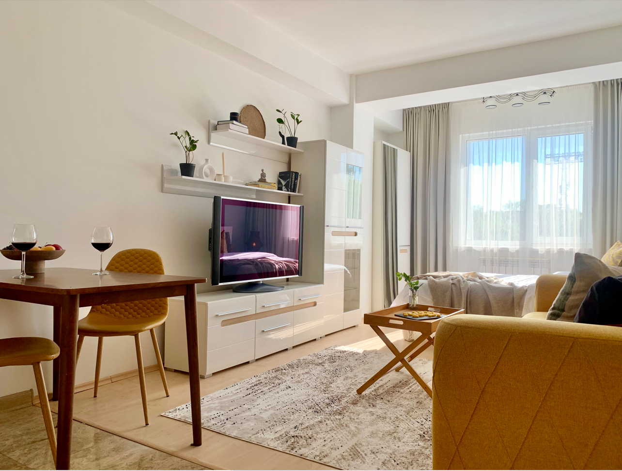 Квартира для посуточной аренды. г Алма-Ата, центральный район. Проблемы: есть мебель, но интерьер безликий и банальный. Проблемы рантье - не тот контингент, много затрат, мало выхлопа, пустует 20 дней из 30.